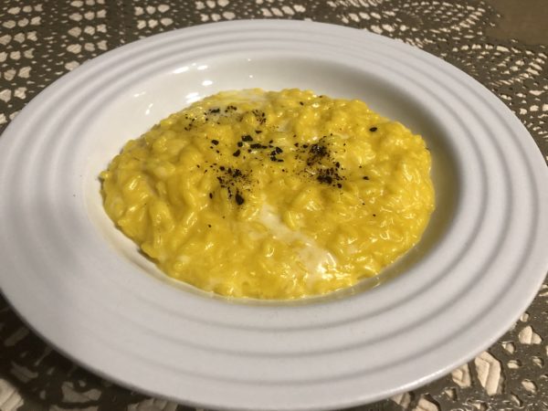 Risotto giallo con scamorza dolce e polvere di liquerizia
