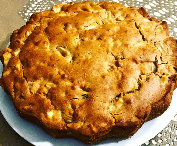 Torta di mele con farina di farro, uvetta al rum e noci
