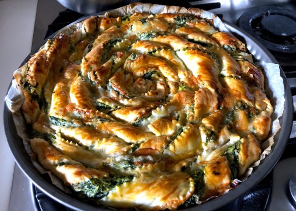 Torta salata a spirale, con spinaci, ricotta, maggiorana e sale dolce di Cervia