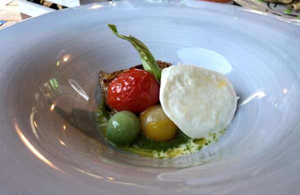 Parmigiana scomposta in guazzetto al basilico