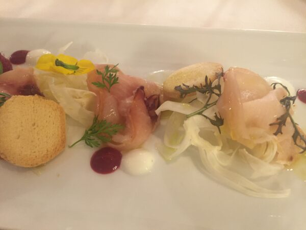 Carpaccio di pesce fresco con finocchio e lampone