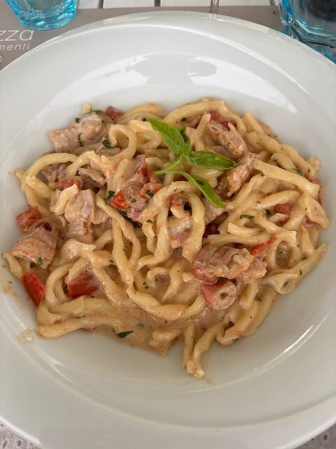 Ghirlanda salata con salsiccia, crescenza e teneri spinaci